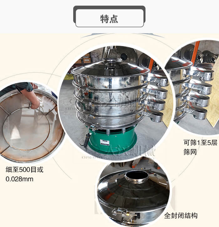 粉末振動(dòng)篩作為一種高精度細(xì)粉篩分設(shè)備,又叫粉末旋振篩,化工粉末振動(dòng)篩,其篩粉精度高,全密閉結(jié)構(gòu),可以保證粉末在篩分過(guò)程中出現(xiàn)粉塵污染,加裝彈跳球、超聲波等請(qǐng)網(wǎng)裝置,可以減少粉末因比重強(qiáng)、含水量高等造成的堵網(wǎng)現(xiàn)象。我們的粉末振動(dòng)篩在機(jī)身與物料接觸部分均采用304不銹鋼材質(zhì),機(jī)座部分則采用普碳鋼材,也可根據(jù)客戶的要求設(shè)計(jì)成304不銹鋼材質(zhì),既可以單層除雜、多層分級(jí)、也可固液分離過(guò)濾使用,篩面層數(shù)1-5層,可分2-6個(gè)出料口,篩分精度高、效率高。